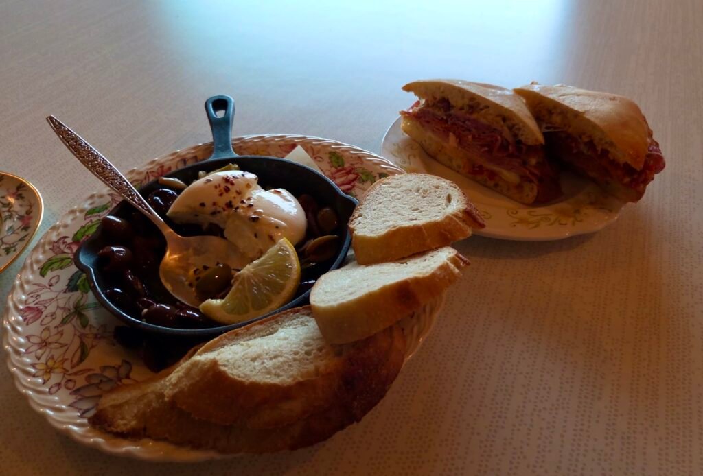 Comfort food for a rainy day in Seward: burrata and warm olives at Primrose Provisions, yum!
