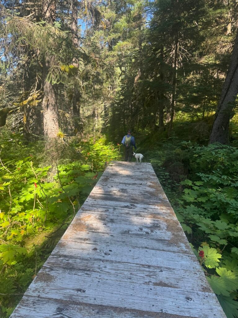 We headed up the Park Road to Kenai Fjords National Park and found free dispersed camping along the gravel bars of Resurrection River. High winds kept us in camp one day and we did not mind at all. We had a couple of spectacular hikes including a mad-dash up to the Harding Icefields and Exit Glacier (dash because we were trying to keep it under 4 hours to get back for Maddie). The wildflowers were spectacular and weather was perfect.